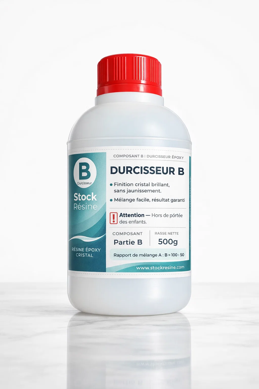 - ✅ Partie A (Résine) : 1kg — Partie B (Durcisseur) : 500g