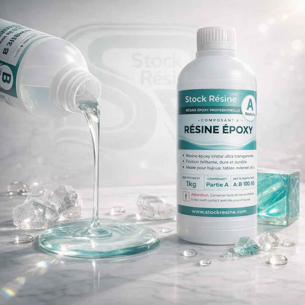 En plus de cette résine époxy transparente A+B, Stock Résine propose une gamme complète pour tous vos projets.